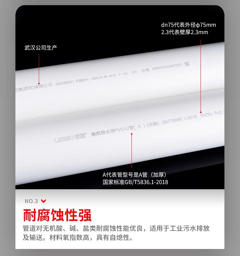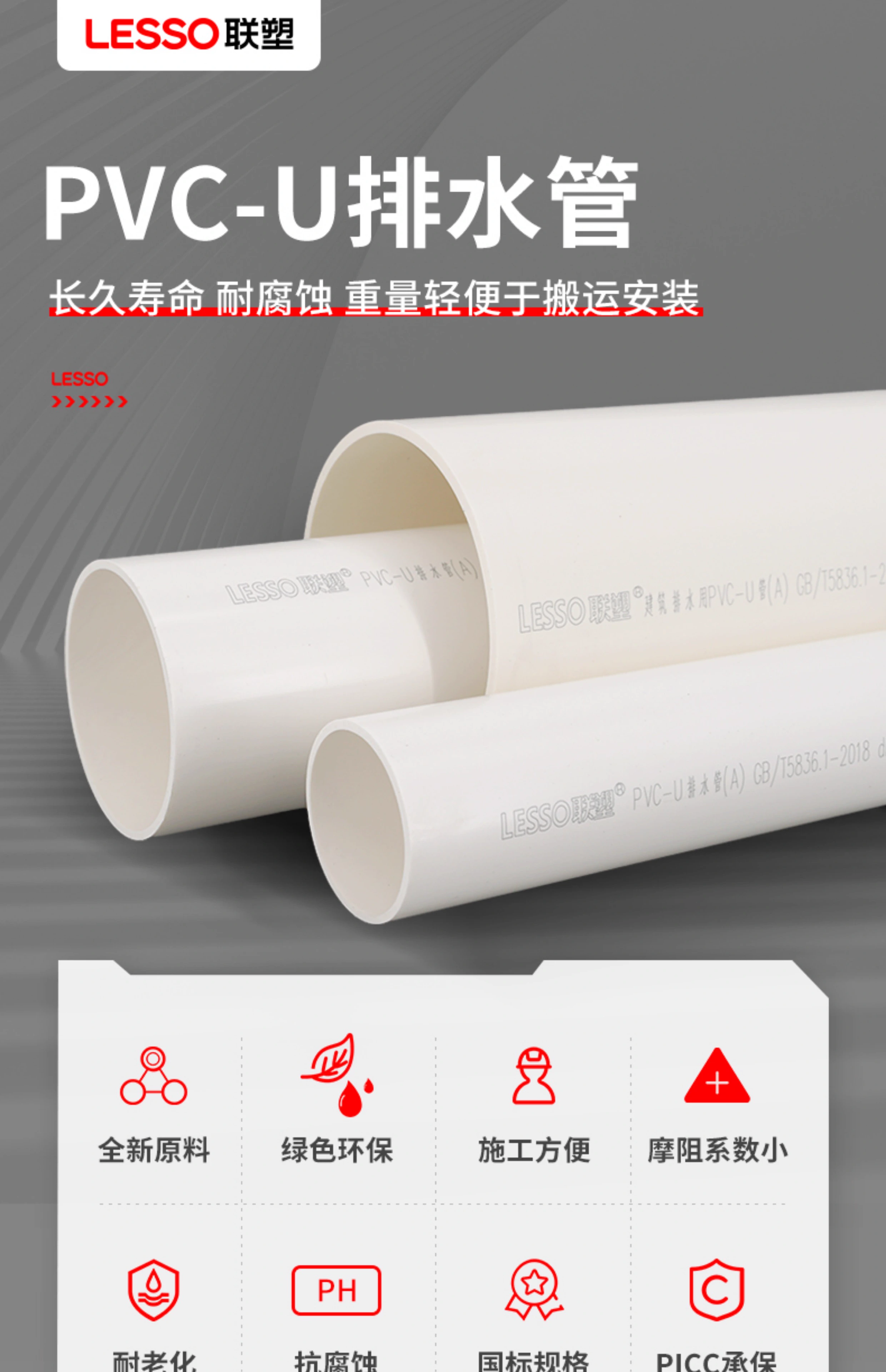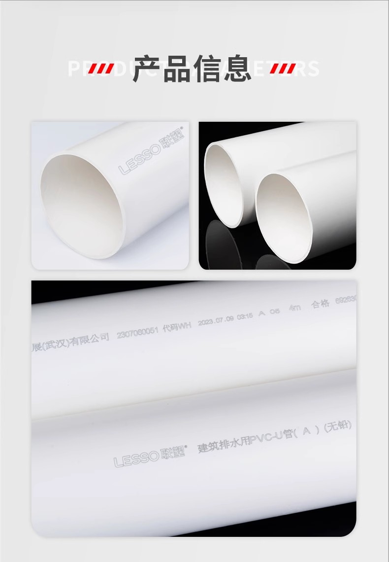 联塑PVC管PVCU排水管下水管国标加厚管4050/75/110/160排污排水管