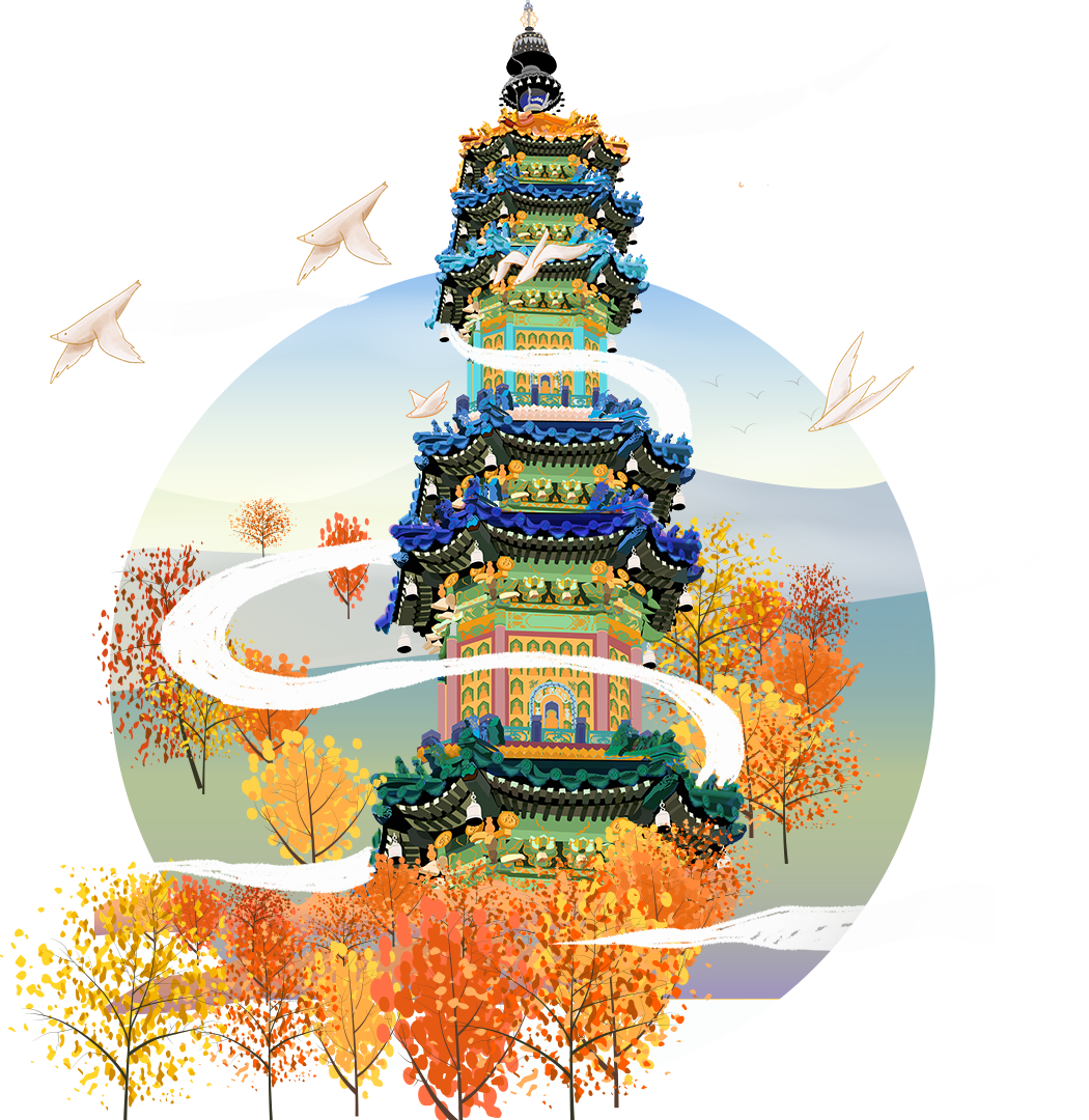颐和园万寿山上的多宝佛塔,是乾隆皇帝在皇太后六十寿辰时,为祈福健康长寿而建。佛塔采用凝厚耐腐的砖石结构,工匠层层垒积修筑,以匠心之固成就屹立百年不倒的建筑之固。不仅如此,塔通身镶嵌黄、绿、青、蓝、紫五色琉璃砖,建成至今琉璃塔仍耀眼夺目、光华如新。在阳光照射下,更显得雍容华贵、高大挺拔。