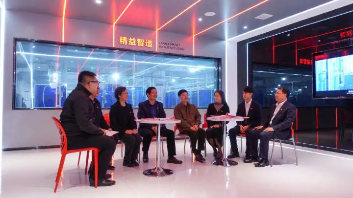 推动全会精神落地落实,乐清电气产业链党建联盟将学习会搬到了企业智能车间外,政企代表共商强链良策,畅想智能制造未来蓝图。