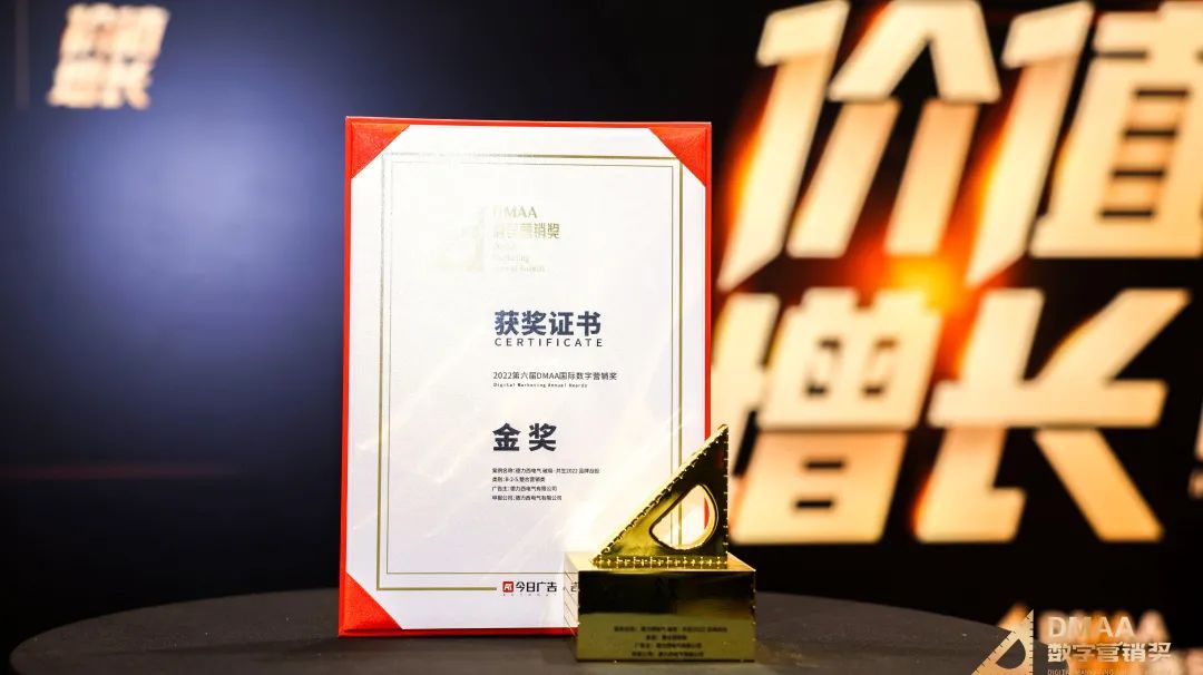 DMAA国际数字营销大奖从2017年诞生至今已举办六届,是面向大中华区征集的数字营销专业奖项,旨在共同甄选出2022年数字营销领域的优秀佳作,探索品牌“价值增长”的时代命题,逐步建立起了行业风向标的品牌形象。此次,德力西电气顺利斩获第六届DMAA国际数字营销奖整合营销类金奖,再次彰显了德力西电气在品牌建设、品牌传播、品牌增长三个角度以数字化驱动品牌价值增长的能力及创新性,见证了品牌的变革与发展。
