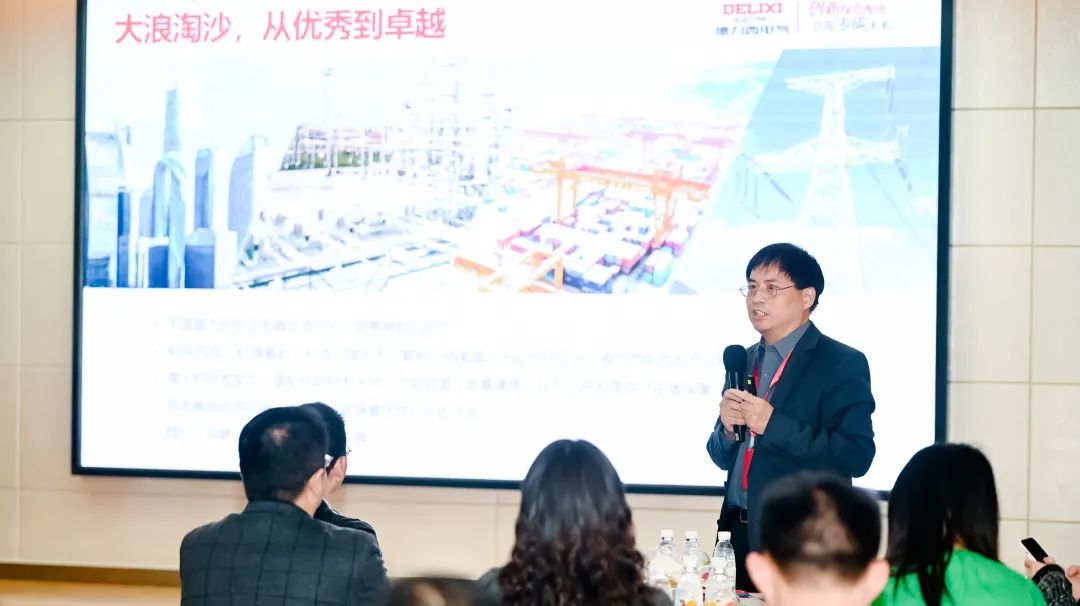 行业应用营销部负责人张云霄向各位来宾们详细介绍了新能源产业链,硅料、多晶硅/单晶硅组件、锂电生产建设、光伏储能电站等行业产品痛点和应对,以及德力西电气产品亮点及解决方案。同时凭借强大的技术,德力西电气研发出物联网终端配电产品,拥有高精度计量,配备网关和云平台,智能互联,远程操控,能够赋能客户让运维更高效、用电更清晰,构建美好智慧生活。
