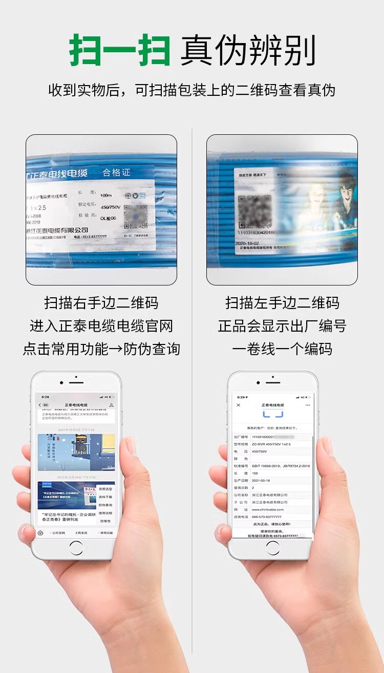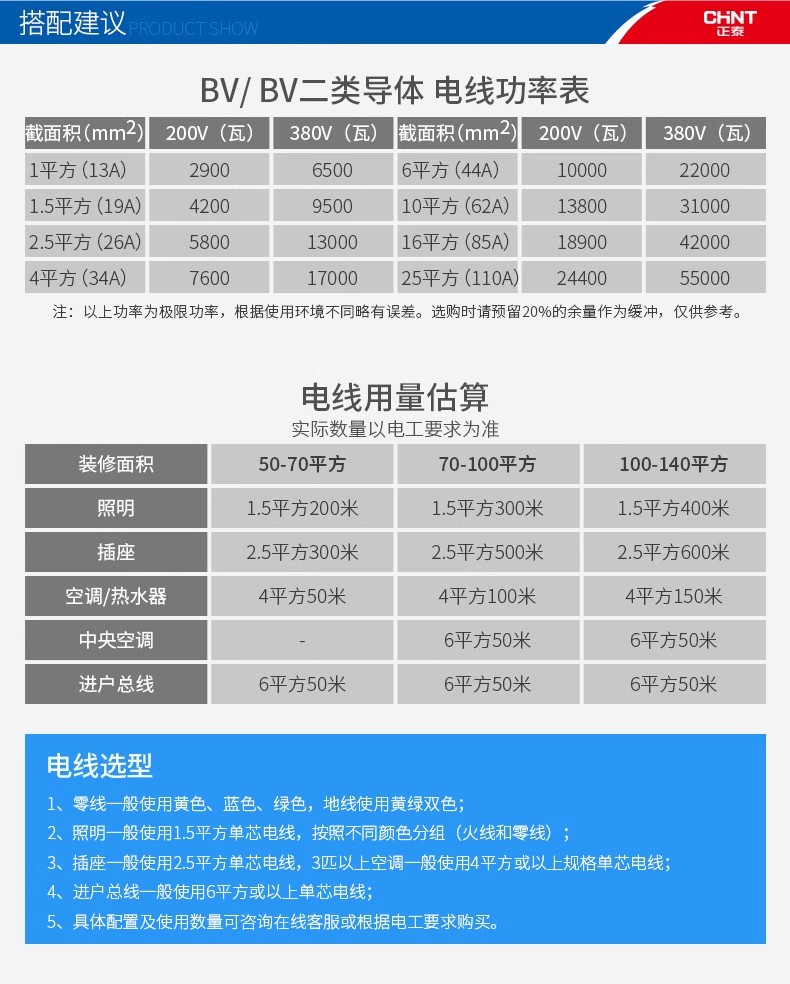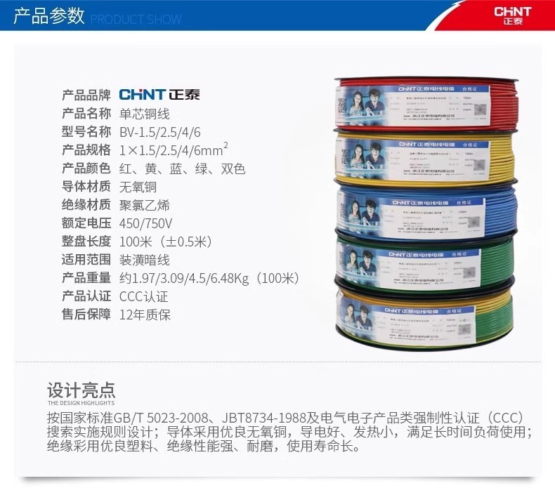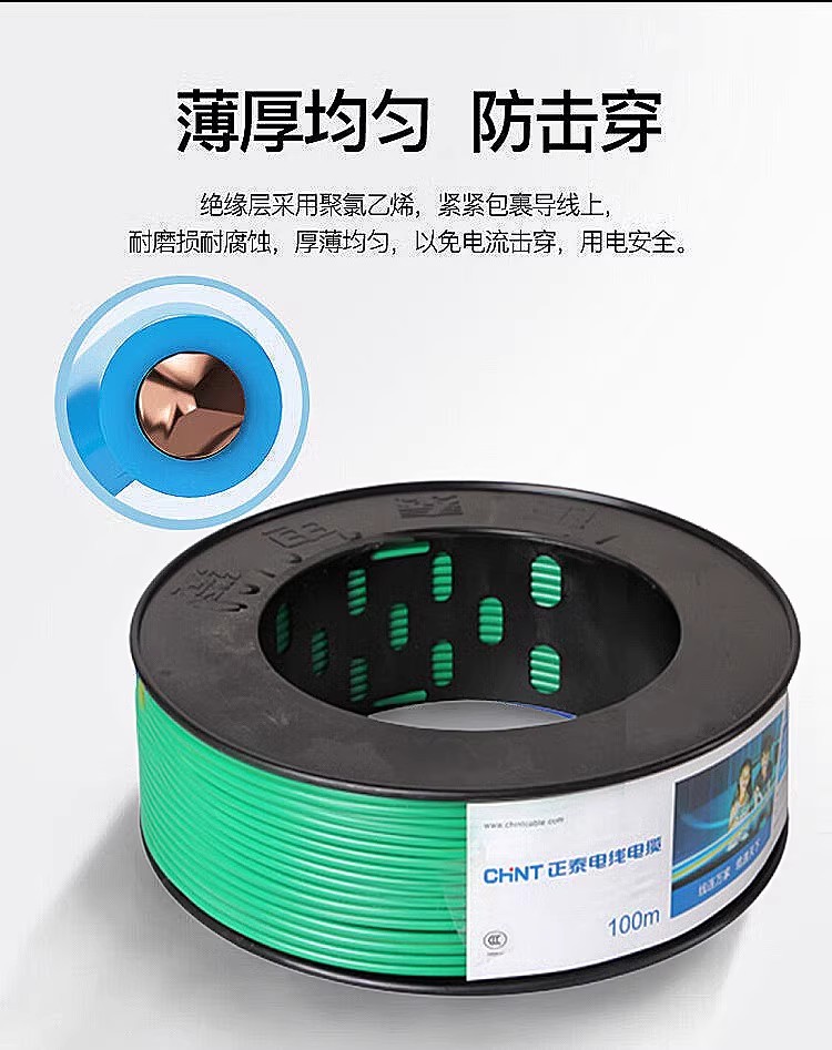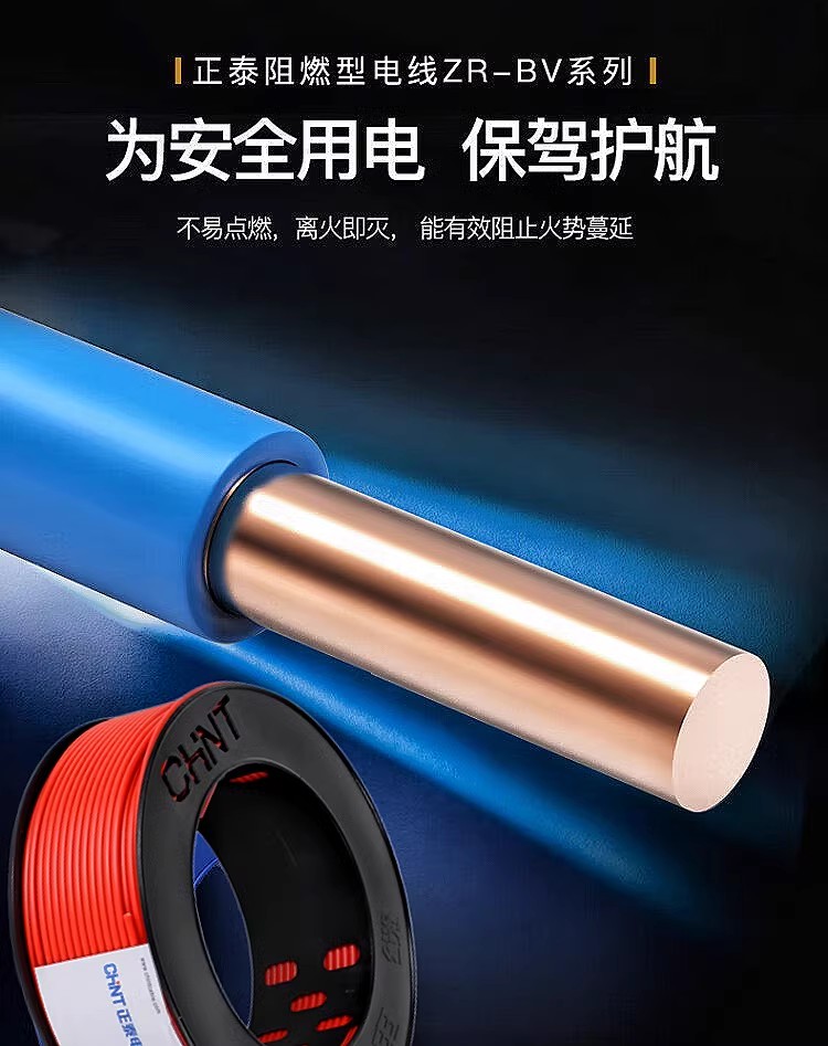 正泰电线家装家用BV硬线1.5国标2.5/4/6平方单股铜芯100米阻燃线