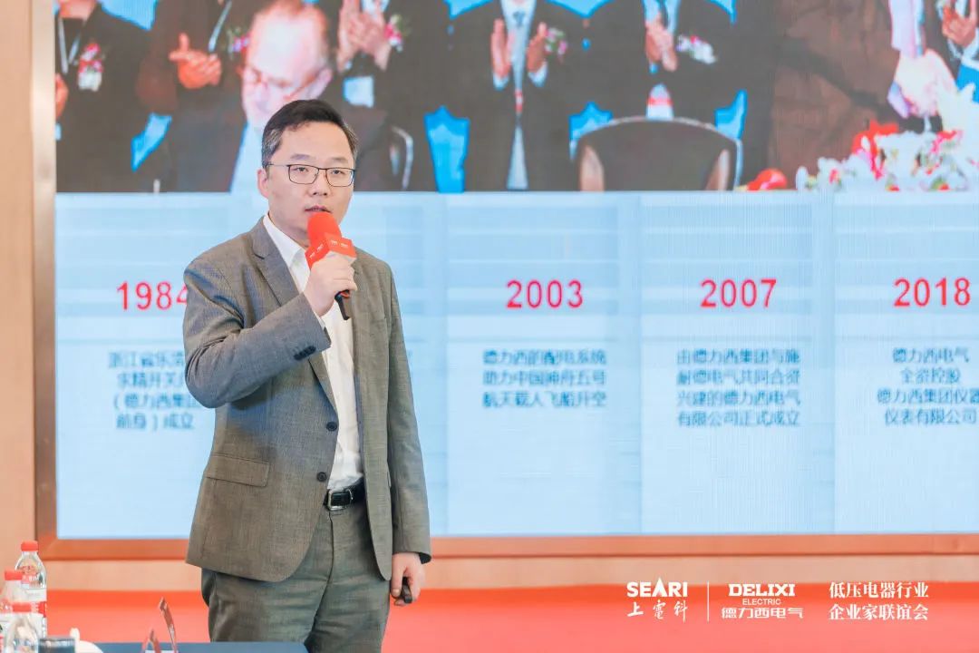 为充分发挥低压电器企业家联谊会桥梁纽带作用,为企业家们提供高层次、开放式、多维度交流与学习平台,德力西电气供应链副总裁孙广青与产品市场总监黄曜介绍了德力西电气企业发展报告,包括企业零碳工厂及绿色可持续发展战略,公司发展历程,当前业务布局,以及未来产品战略部署等。希望能以自身实践与在座各位企业家们交流,携手共建可持续生态圈,共筑低压电器行业新未来。