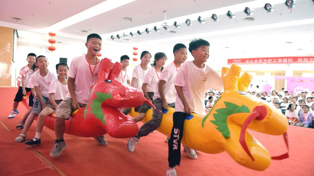 为了让更多孩子了解感受中国传统龙舟文化,企业还为远道而来的孩子们准备了旱地龙舟比赛。一艘艘造型独特的充气龙舟整装待发,孩子们齐心协力,向前冲刺。赛场两边欢呼声不断,整个赛场充满了欢声笑语。还有跃龙龙舟队成员,为孩子们讲解龙舟精神,带孩子们制作龙舟模型,感受传统文化魅力。